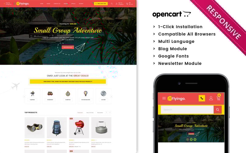 Flyingo – The Mega Travel Store Premium OpenCart Template is a modern travel website template ideal for travel agencies, tour operators, and holiday booking platforms to showcase destinations and attract visitors.
